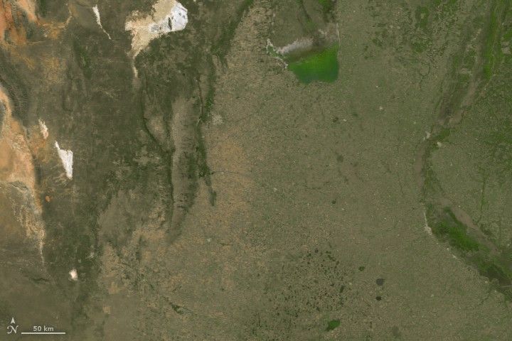 At night, however, a very different pattern emerges. Satellite observations from the VIIRS instrument reveal networks of towns, infrastructure corridors, and economic hubs through artificial light. What looks empty by day often becomes a connected system of activity after dark.
